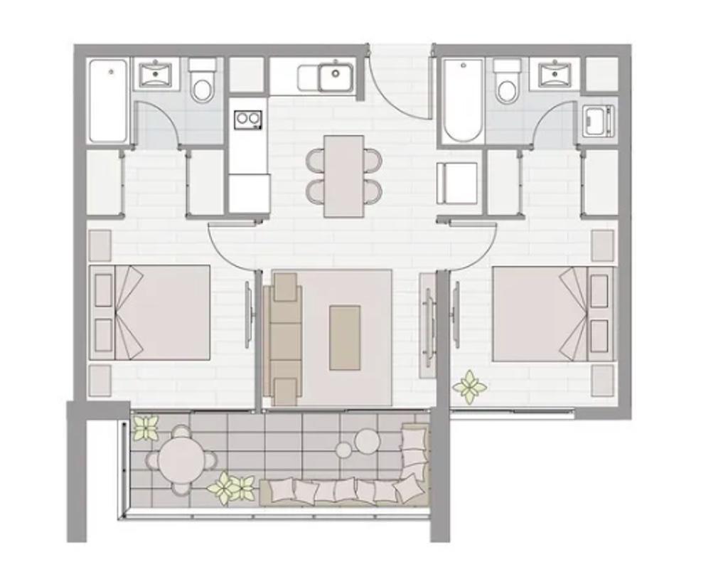 El inmueble dispone de dos dormitorios y dos baños, ambos en suite, con espacio para camas de dos plazas.