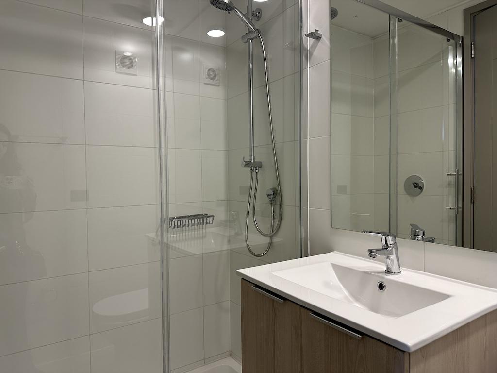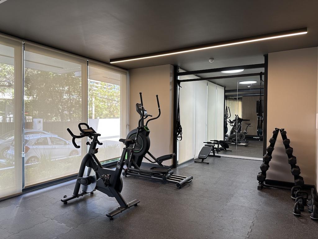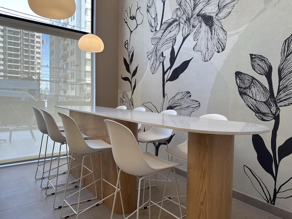 El departamento se entrega con cortinas roller, lámparas y mesa de comedor de granito.