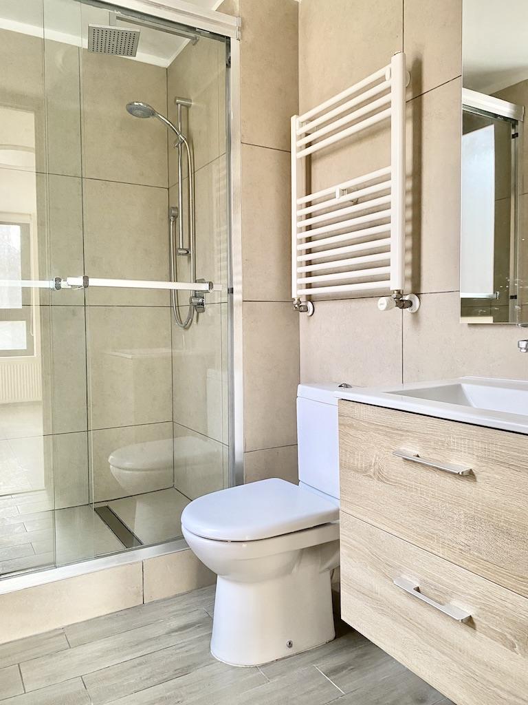 - Dormitorio principal en suite con baño con ventana y walking closet.