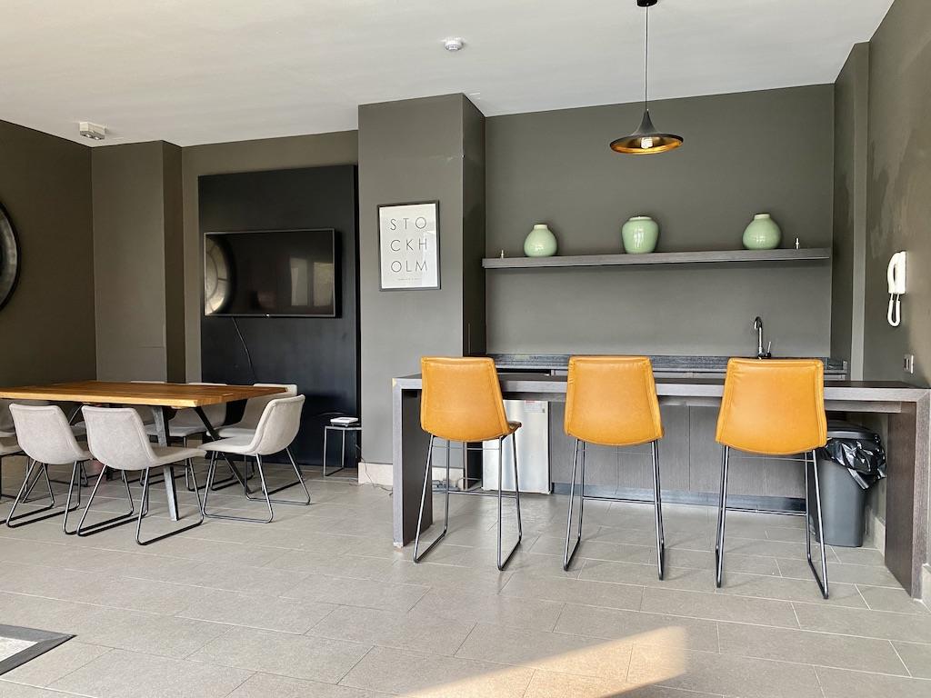- Cocina incorporada y equipada con muebles de cocina, campana, encimera, horno electrico, refrigerador, microondas.